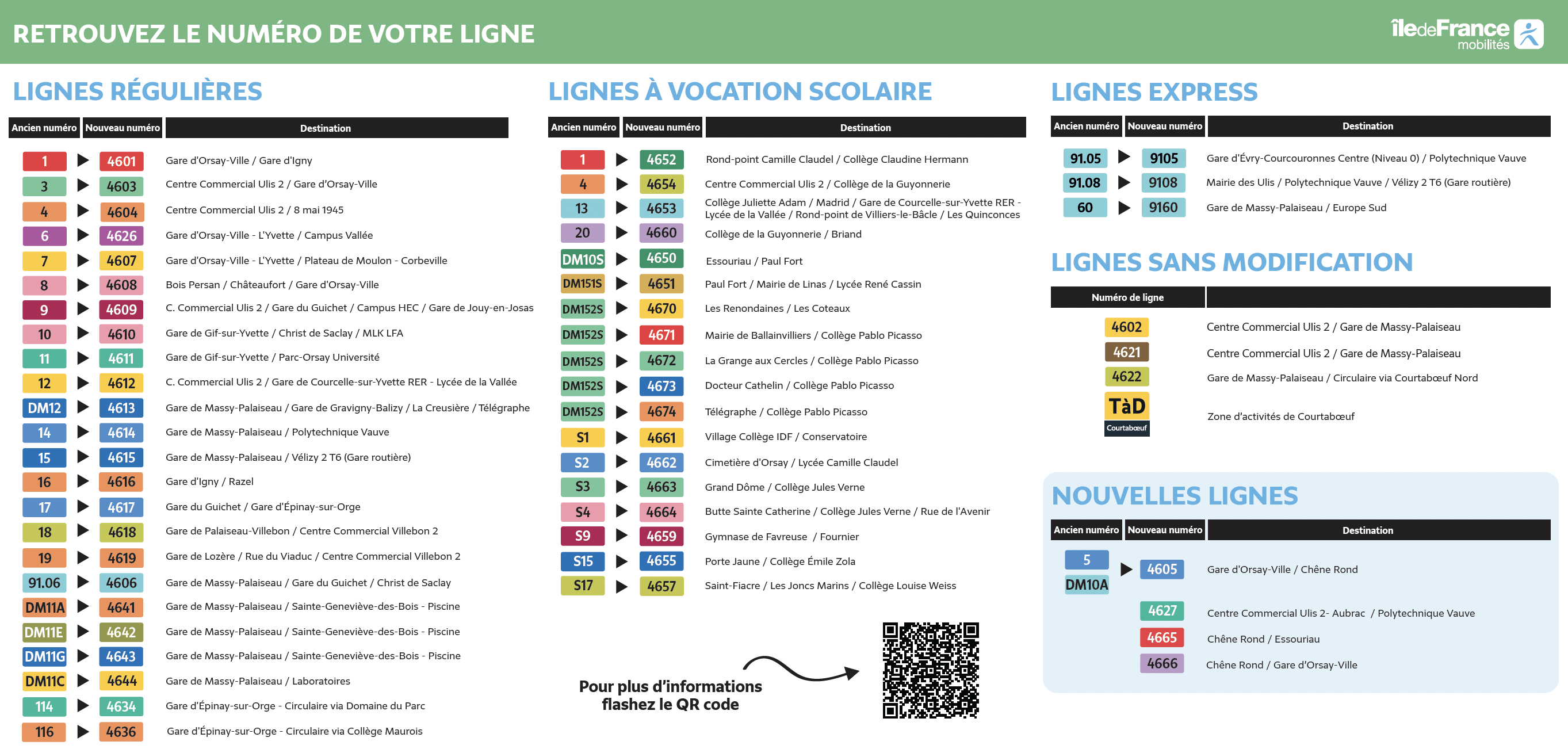 À compter du 15 septembre, toutes les lignes de bus du territoire changent de numéro. Cette mise à jour s’inscrit dans une démarche de la Région pour harmoniser la numérotation à l’échelle de l’Île-de-France : rendre le réseau plus clair et plus facile à utiliser pour les usagers.