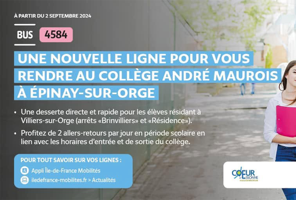 Pour votre information, une nouvelle ligne de bus est désormais en service depuis le lundi 2 septembre dernier. Cette ligne n°4584 vous permet de vous rendre au collège André Maurois […]